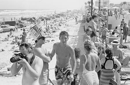 | This scene could change in the near future. Driving on the beach at Daytona is being rethought. Environmental groups have been pressuring for a ban and restrictions have been added. It is no longer possible to drive on the beaches at night and parking is now only allowed on one side of the driving lanes of the "World's Most Famous Beach". |
